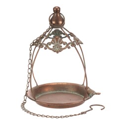 Krmítko/pítko - závěsné, kov, miska s ptáčky, měděné