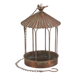 Krmítko/pítko kovové - závěsné, klec s ptáčkem, měděné