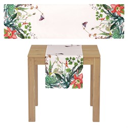 Běhoun s motivem zelených listů, barva bílá, 40x150 cm,100 % polyester.