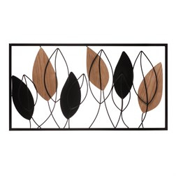 Nástěnná dekorace - listy v rámečku, MDF a kov