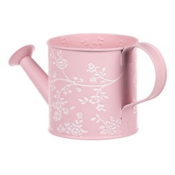 VýprodejObal kovový - konev, v růžové barvě s bílými růžemi