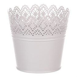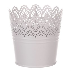 VýprodejObal kovový - kulatý, krajkový okraj, barva šedá