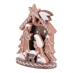 Betlém perníkový - polyresin, LED osvětl., hnědý s bílým zdobením
