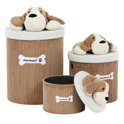 Koš regálový a prádelní - manšestr s pejskem, hnědý, cena za sadu 3 ks
