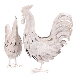 Slepice a kohout - kov s patinou, barva bílá, cena za 1 ks