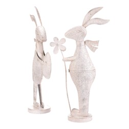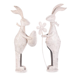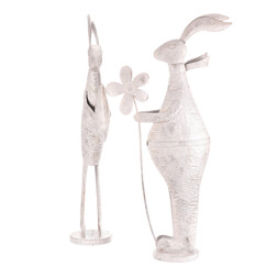 Zajíc kovový - s patinou, bílý, vel. L, mix 2, cena za 1 ks