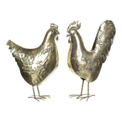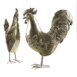 Slepice a kohout - kovová dekorace, zlatá, cena za 1 ks