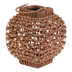 Lucerna z polyratanu - hranatá, LED osvětlení, vel. M, světle hnědá