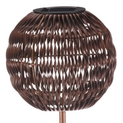 Lucerna na zápichu - polyratan, kulatá, LED osvětl., tmavě hnědá