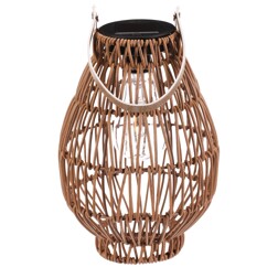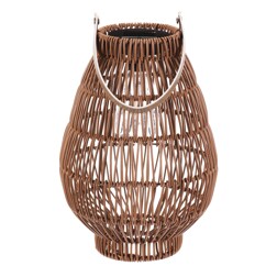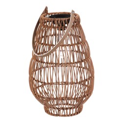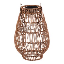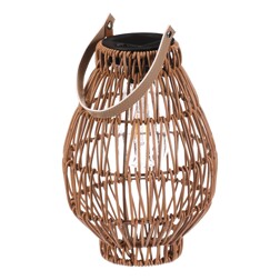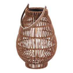 Lucerna z polyratanu - tvar hruška, LED osvětl., vel. L, světle hnědá