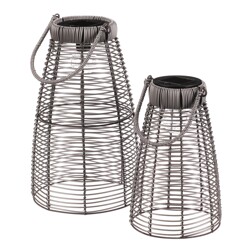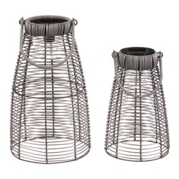 Lucerna z polyratanu - kónická, LED osvětl., šedá, cena za sadu 2 ks