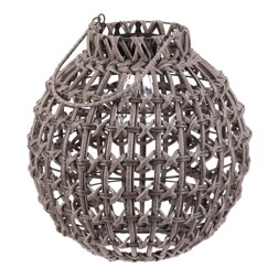 Lucerna - polyratan a kov, tvar balónu, LED osvětl, vel. L, zeleno-hnědá