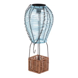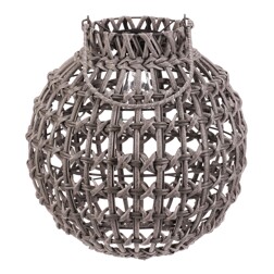 Lucerna - polyratan a kov, tvar balónu, LED osvětl, vel. L, modro-hnědá
