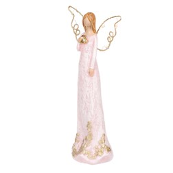 VýprodejAnděl - polyresin, růžový se zlatým srdcem
