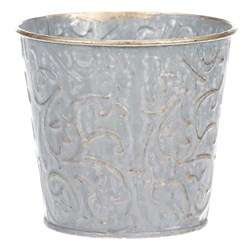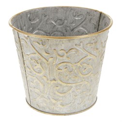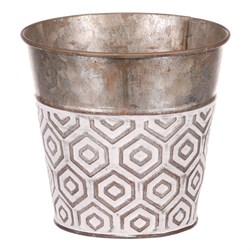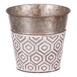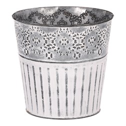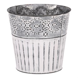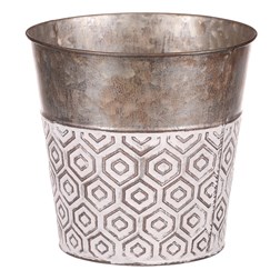 VýprodejObal kovový - kulatý, vysoký, s ornamenty, bílo-měděný