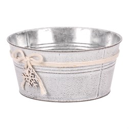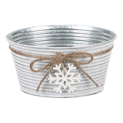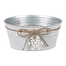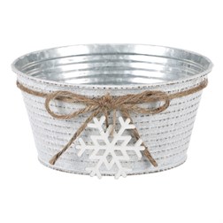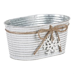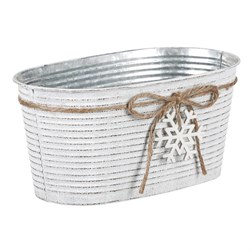 VýprodejObal kovový - oválný truhlík, s dřevěnou vločkou, bílý