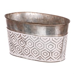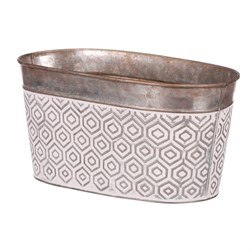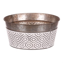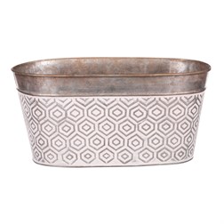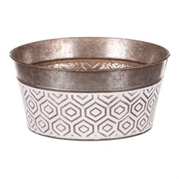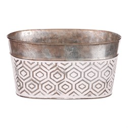 VýprodejObal kovový - oválný truhlík, s ornamenty, bílo-měděný