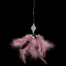 Dekorace z peří závěsná - barva růžová, balení 6 ks, cena za 1 ks