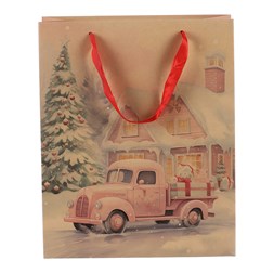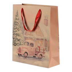 Taška papírová - hnědá, vánoční motiv, mix 2, vel. M, cena za 1 ks