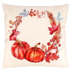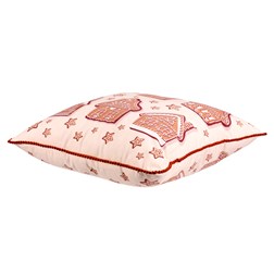 VýprodejPolštář s výplní, satén. Vánoční motiv, perníček a skořice na bílém podkladu. 45