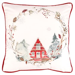 Polštář sametový s výplní - vánoční, červené okraje, 100% polyester, 45 x 45 cm
