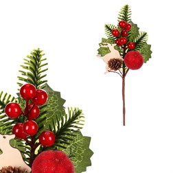 Smrk s jablíčkem a bobulemi - umělá větev, mix 2 druhů, cena za 1 ks