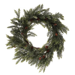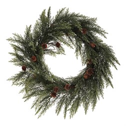 Věnec - umělé květiny, bobule a kapradí, pr. 50 cm, růžovo-zelený