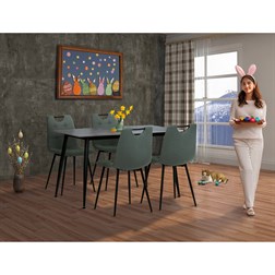 Jídelní set s 4 židlemi, 130x70x76cm, keramika, mramor, ASE-1001 GRN2