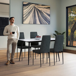 Jídelní set s 4 židlemi, 130x70x76cm mramor, ASE-1003 BK2