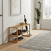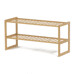 Botník s dvěma policemi je vyroben z masivního bambusu v přírodním odstínu, který přináší do interiéru svěží a teplý vzhled. Jeho otevřená konstrukce umožňuje dobré větrání obuvi a zároveň nabízí dostatek prostoru pro uložení více párů bot. Pevné bambusové lišty zajišťují stabilitu a dlouhou životnost, přičemž lehká povrchová úprava zachovává přirozenou strukturu materiálu. Kompaktní rozměry a jednoduchý design umožňují snadné umístění v předsíni nebo šatně, kde botník efektivně pomáhá udržet pořádek.