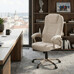 Kancelářské křeslo v béžovém provedení kombinuje komfort s praktickým designem vhodným pro dlouhodobé sezení. Čalounění z kvalitní látky zajišťuje příjemný povrch a snadnou údržbu, zatímco pevné područky s měkkým polstrováním podporují pohodlí paží. Vysoký opěrák je doplněn pevnou opěrkou hlavy s vyměkčenou vrchní částí, která přispívá k lepší podpoře krční páteře. Houpací mechanismus umožňuje nastavení polohy sedáku a výšková nastavitelnost zajišťuje ergonomické přizpůsobení uživateli. Stabilní základna z plastu v odstínu champagne je vybavena kolečky vhodnými pro tvrdé povrchy, což usnadňuje mobilitu a zároveň chrání podlahu.