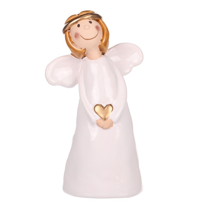 Anděl - keramická figurka, bílá se zlatým srdcem