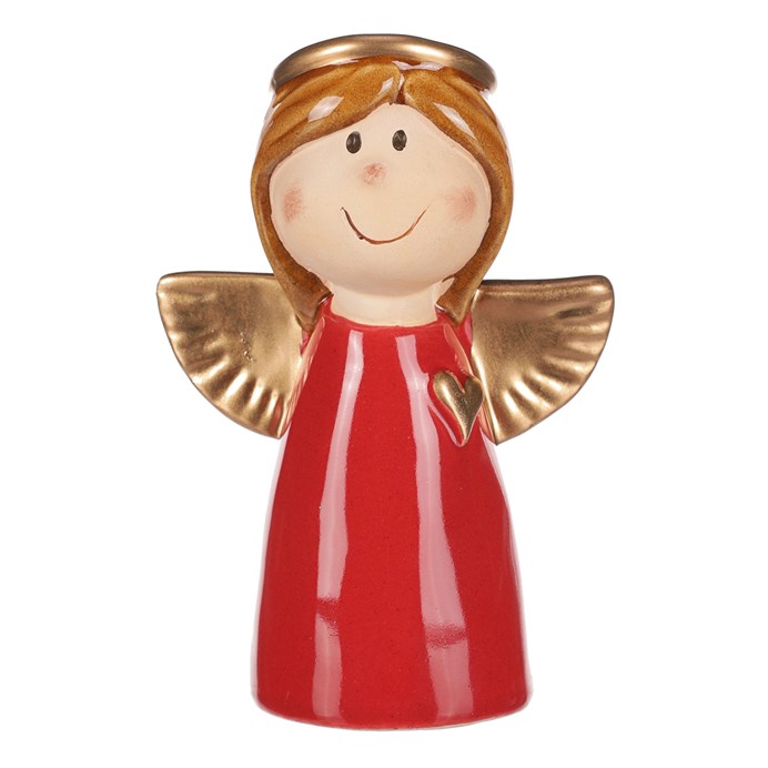 Anděl - keramická figurka, červená se zlatými křídly