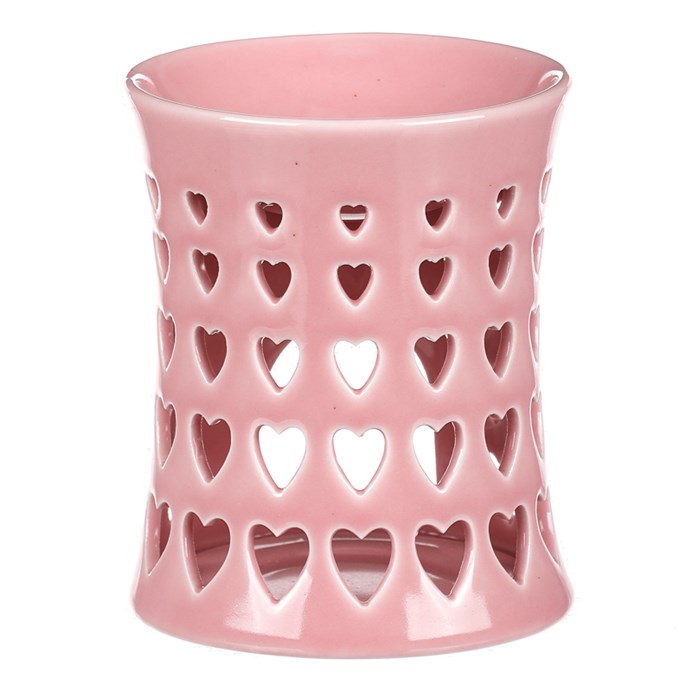 Aroma lampa s motivem srdíček, růžová barva, porcelán.