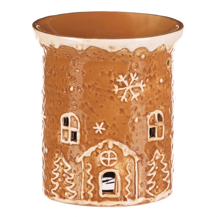 Aroma lampa, která vypadá jako vytvořená z perníku a ozdobena bílou sladkou polevou, bude perfektní dekorací pro období Vánoc. Je ozdobena zimními motivy, jako jsou vločky, zasněžené stromky a domeček. Umožňuje po zapálení svíčky provonět váš prostor, a navíc vytvořit dokonalý světelný efekt pronikajícími paprsky skrze okénka.
