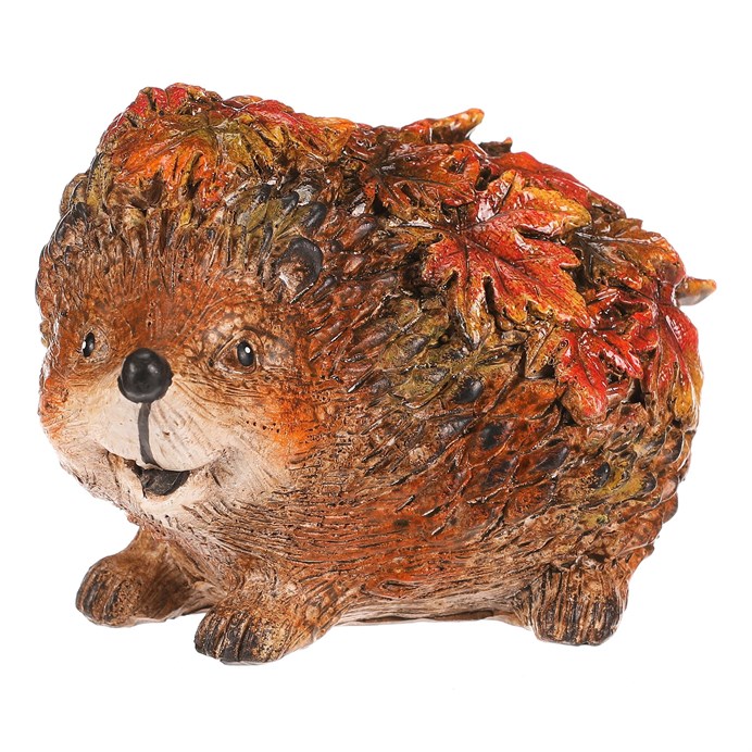 Ježek s barevnými lístky - polyresin, oranžovo-hnědý