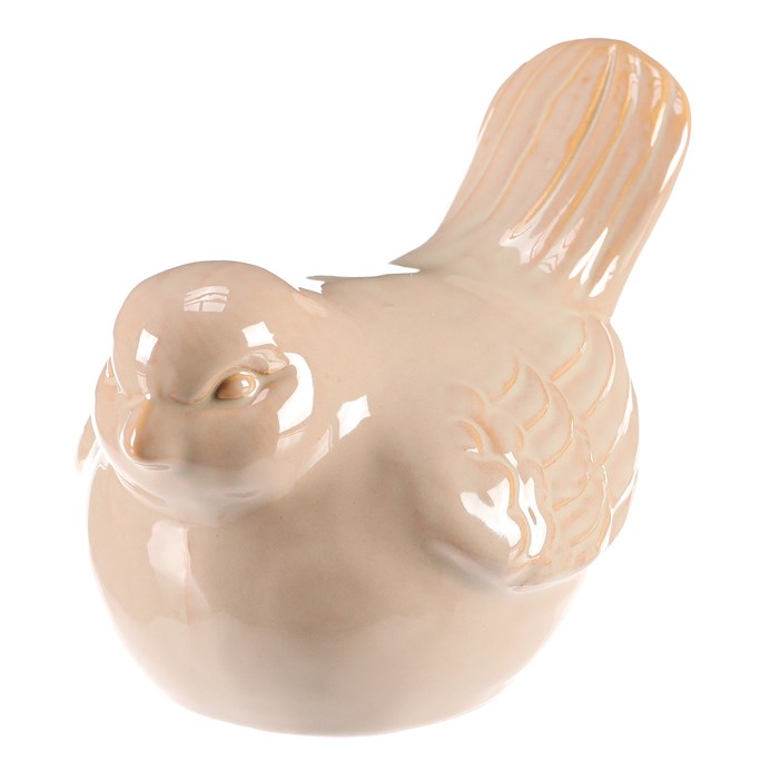 Ptáček keramický - zahradní dekorace, velký, krémový