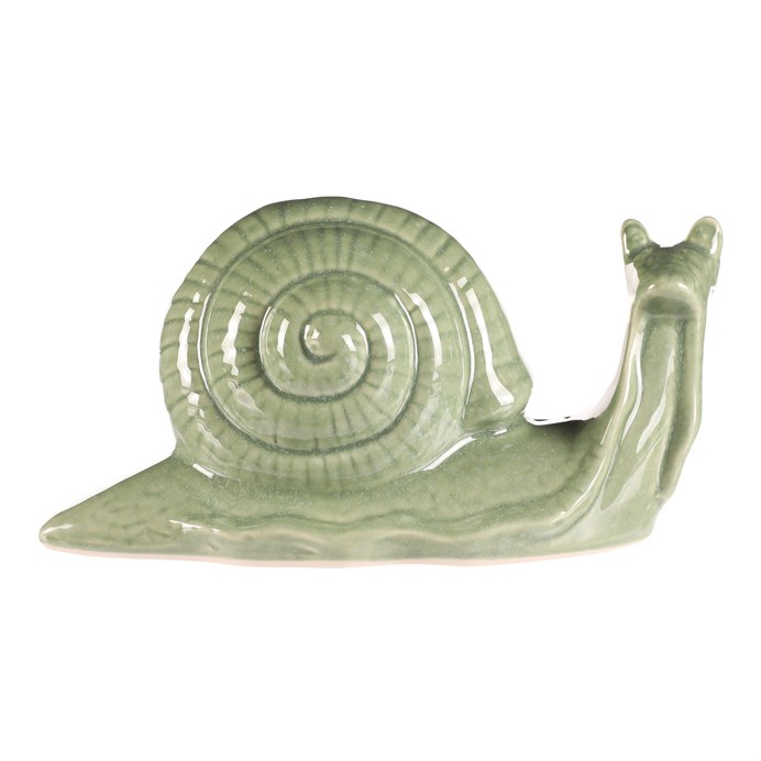 Zelený keramický šnek je oblíbenou volbou pro zkrášlení zejména venkovních prostor. Jeho jednobarevné a elegantní provedení se hodí do každé zahrady, balkónku, či na terasu. Tento keramický společník vám, narozdíl od živého, na úrodu nezaútočí, ale svým půvabem ji rozhodně oživí. Zvířecí figurka, která potěší každého návštěvníka a přinese do vašeho oblíbeného prostoru svěží prvek.