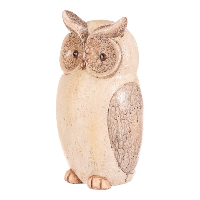 Sova z magnesia v přírodních béžových a hnědých odstínech je působivou zahradní dekorací, která v sobě spojuje eleganci i roztomilost. Díky svému výraznému vzhledu se hodí jako originální ozdoba k rostlinám, na schody i pod strom. Milý společník, který dodá vaší zahradě příjemnou atmosféru.