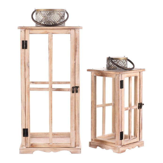 Lucerna dřevěná - čtyřboká, cena za sadu 2 ks