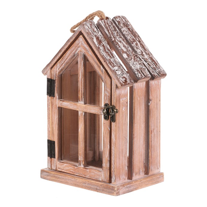 Dřevěná lucerna ve tvaru domku vnese do vašeho domova pohádkovou atmosféru. Elegantní dvířka umožňují snadné vložení svíčky, která po rozsvícení vytvoří neodolatelný světelný efekt. Díky přírodní barvě dřeva a možnosti zavěšení i postavení je ideální dekorací pro dlouhé zimní večery.