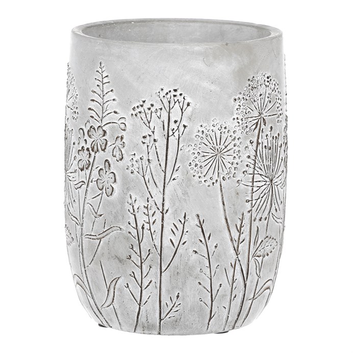 Přemýšlíte o výsadbě rostlin do nového obalu, který by vás nadchl svým vzhledem a byl přitom dostatečně pevný a odolný? Perfektním řešením pro vás bude právě tento jedinečný betonový obal na květiny s dekorem lučního kvítí v šedé barvě. Nabízí dostatek prostoru pro širokou paletu nejrůznějších květin nebo třeba sukulentů. Kombinace krásných rostlin zasazených do takto zdobené a tvarované dekorace spolu vytvoří jedinečnou kompozici. Při pohledu na tuto vámi vytvořenou krásu budete na sebe hrdí a mít skvělý pocit z dobře odvedené práce, což náležitě ocení i ostatní lidé ve vašem okolí.