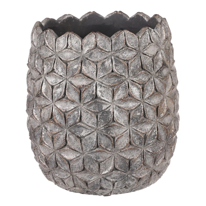 Šedá betonová váza je skvělým prostředkem, který umocní krásu vašich květin, či jiných ozdob v ní umístěných. Její jednobarevné provedení s ozdobným květinovým motivem vytváří elegantní a vkusný design. Betonový obal má nespornou výhodu v tom, že je těžší a poskytuje vyšší stabilitu. Je zcela nepropustná, a když je třeba, zadržuje vodu a chrání okolní prostředí před vlhkostí. Naopak rostlinám poskytuje lepší podmínky, takže i řezané květiny vydrží delší dobu v dobré kondici. Váš interiér tím obohatíte o vkusný dekorativní prvek, který bude plnit estetickou i praktickou funkci na jedničku.