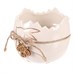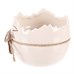 Keramický obal ve tvaru poloviny vajíčka, jakoby právě po vylíhnutí, je originální dekorací pro jarní období. Bílá barva a silueta zajíčka dodávají jemný, roztomilý vzhled, zatímco provázek a malý dřevěný květ dodávají na rustikálním kouzlu.