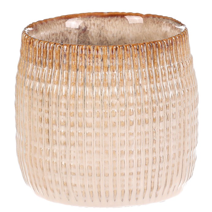 Elegantní keramický obal na květiny v béžovo-hnědých odstínech, zaujme svým vlnitým povrchem, který přidává na zajímavosti a textuře. Je ideální pro zvýraznění vašich oblíbených rostlin a přináší do každého prostoru sofistikovaný dotek přírody. Jeho nadčasový design se hodí do jakéhokoli interiéru, od moderního po tradiční, a dodá vašemu domovu útulnou atmosféru.