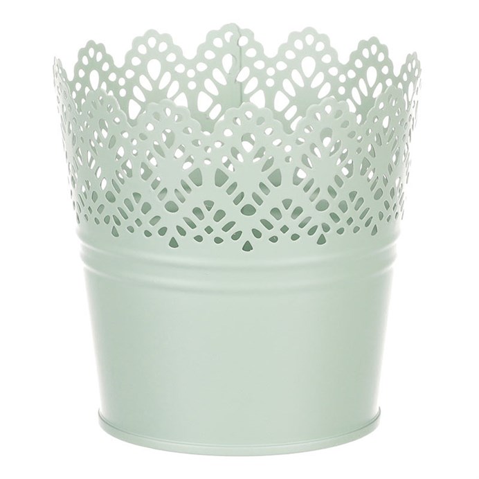 Chcete si udělat radost nevšedním vyzdobením vašeho oblíbeného prostoru květinami, a dochází vám nápady do čeho je vsadit? Zkuste sáhnout po této jedinečné dekoraci v podobě kovového obalu v zeleném dekoru s krajkovým okrajem a nebudete litovat. Díky svému tvaru a vzhledu se tento kovový obal stane okouzlujícím doplňkem pro vaše květiny. Kombinace krásných rostlin zasazených do takto zdobené a tvarované dekorace spolu vytvoří jedinečnou kompozici. Při pohledu na tuto vámi vytvořenou krásu budete na sebe hrdí a mít skvělý pocit z dobře odvedené práce. Přineste si do svého domova prvek originality s tímto nevšedním kovovým obalem na květiny, který okouzlí každého obdivovatele rostlin a skvěle oživí váš prostor.