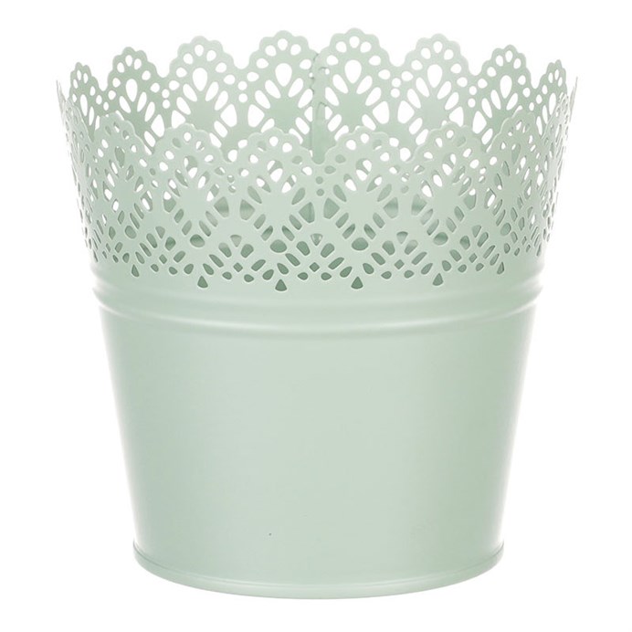 Chcete si udělat radost nevšedním vyzdobením vašeho oblíbeného prostoru květinami, a dochází vám nápady do čeho je vsadit? Zkuste sáhnout po této jedinečné dekoraci v podobě kovového obalu v zeleném dekoru s krajkovým okrajem a nebudete litovat. Díky svému tvaru a vzhledu se tento kovový obal stane okouzlujícím doplňkem pro vaše květiny. Kombinace krásných rostlin zasazených do takto zdobené a tvarované dekorace spolu vytvoří jedinečnou kompozici. Při pohledu na tuto vámi vytvořenou krásu budete na sebe hrdí a mít skvělý pocit z dobře odvedené práce. Přineste si do svého domova prvek originality s tímto nevšedním kovovým obalem na květiny, který okouzlí každého obdivovatele rostlin a skvěle oživí váš prostor.