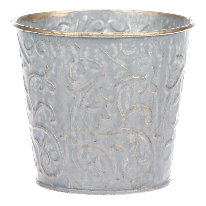 Chcete si udělat radost nevšedním vyzdobením vašeho oblíbeného prostoru květinami, a dochází vám nápady do čeho je vsadit? Zkuste sáhnout po této jedinečné dekoraci v podobě kovového obalu se zlatým okrajem a ozdobnými ornamenty a nebudete litovat. Díky svému tvaru a vzhledu se tento kovový obal stane okouzlujícím doplňkem pro vaše květiny. Kombinace krásných rostlin zasazených do takto zdobené a tvarované dekorace spolu vytvoří jedinečnou kompozici. Při pohledu na tuto vámi vytvořenou krásu budete na sebe hrdí a mít skvělý pocit z dobře odvedené práce. Přineste si do svého domova prvek originality s tímto nevšedním kovovým obalem na květiny, který okouzlí každého obdivovatele rostlin a skvěle oživí váš prostor.