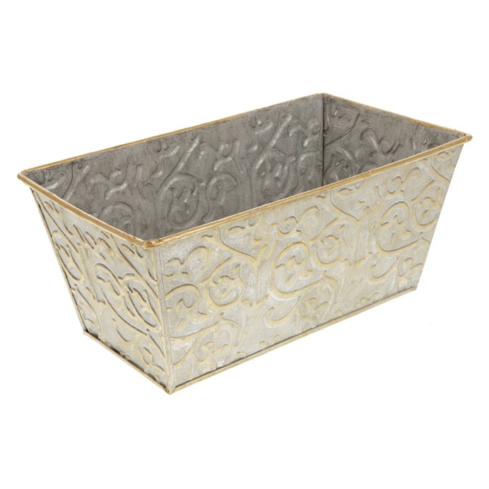 Chcete si udělat radost nevšedním vyzdobením vašeho oblíbeného prostoru květinami, a dochází vám nápady do čeho je vsadit? Zkuste sáhnout po této jedinečné dekoraci v podobě truhlíku na květiny z kovu se zlatými ornamenty a nebudete litovat. Díky svému tvaru a vzhledu se tento kovový obal stane okouzlujícím doplňkem pro vaše květiny. Kombinace krásných rostlin zasazených do takto zdobené a tvarované dekorace spolu vytvoří jedinečnou kompozici. Při pohledu na tuto vámi vytvořenou krásu budete na sebe hrdí a mít skvělý pocit z dobře odvedené práce. Přineste si do svého domova prvek originality s tímto nevšedním kovovým obalem na květiny, který okouzlí každého obdivovatele rostlin a skvěle oživí váš prostor.