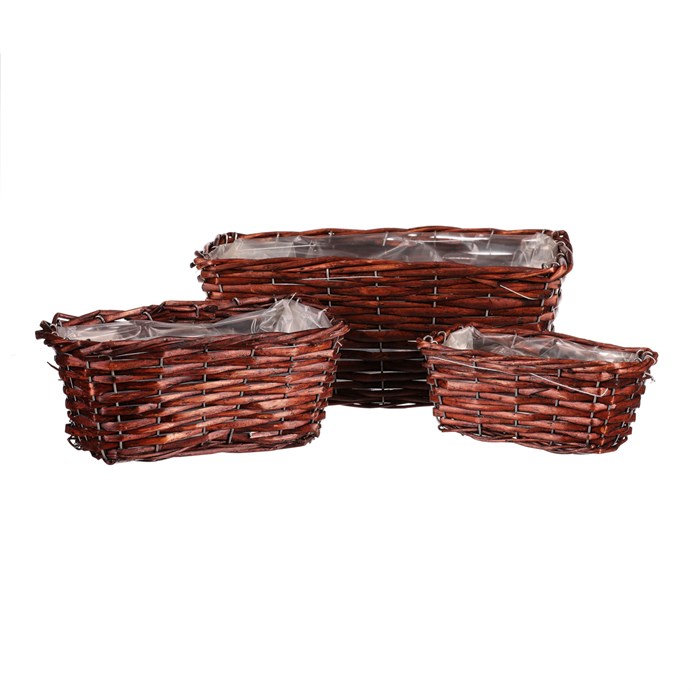 Košík proutěný - hranatý truhlík, tmavě hnědý, cena za sadu 3 ks